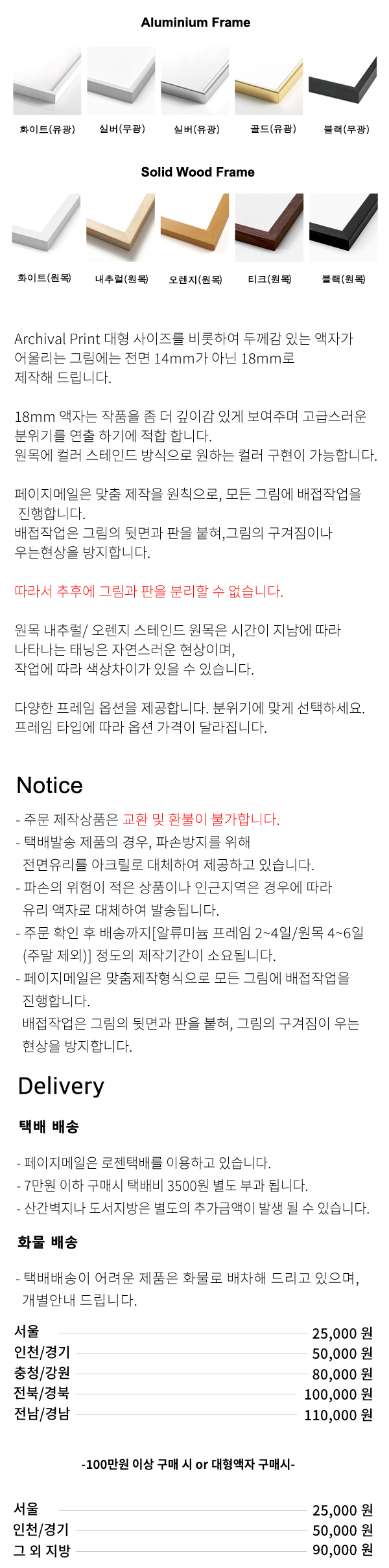 * 단, 네이버페이로 결제시 서울/경기 기준 기본 화물 배송비만 우선 결제되며, 지방 추가 운송/설치비는 추후 개별 안내 드립니다.