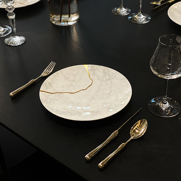 테이블에 직접 닿지 않는 깔끔하고 단정한 호랑 테이블 커트러리입니다. 국가 표면처리 명장 배명직 명장의 기술력과 함께한 골드 에디션으로 사용하는 모든 순간을 특별하고 아름답게 만들어줍니다.