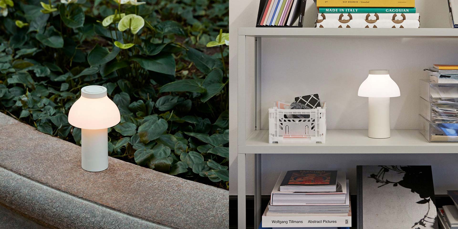 Pc Portable Lamp는 실내외용으로 쓸 수 있는 충전식 무선 독립형 스탠드 램프입니다. 견고한 플라스틱으로 스크레치 방지 처리가 되었으며 방수 기능도 가졌습니다. 취향대로 하단 직사광선으로 조정하시거나 은은한 불빛을 발산하도록 설정하실 수 있고 다양한 T.P.O 상황에서 사용하실 수 있습니다.